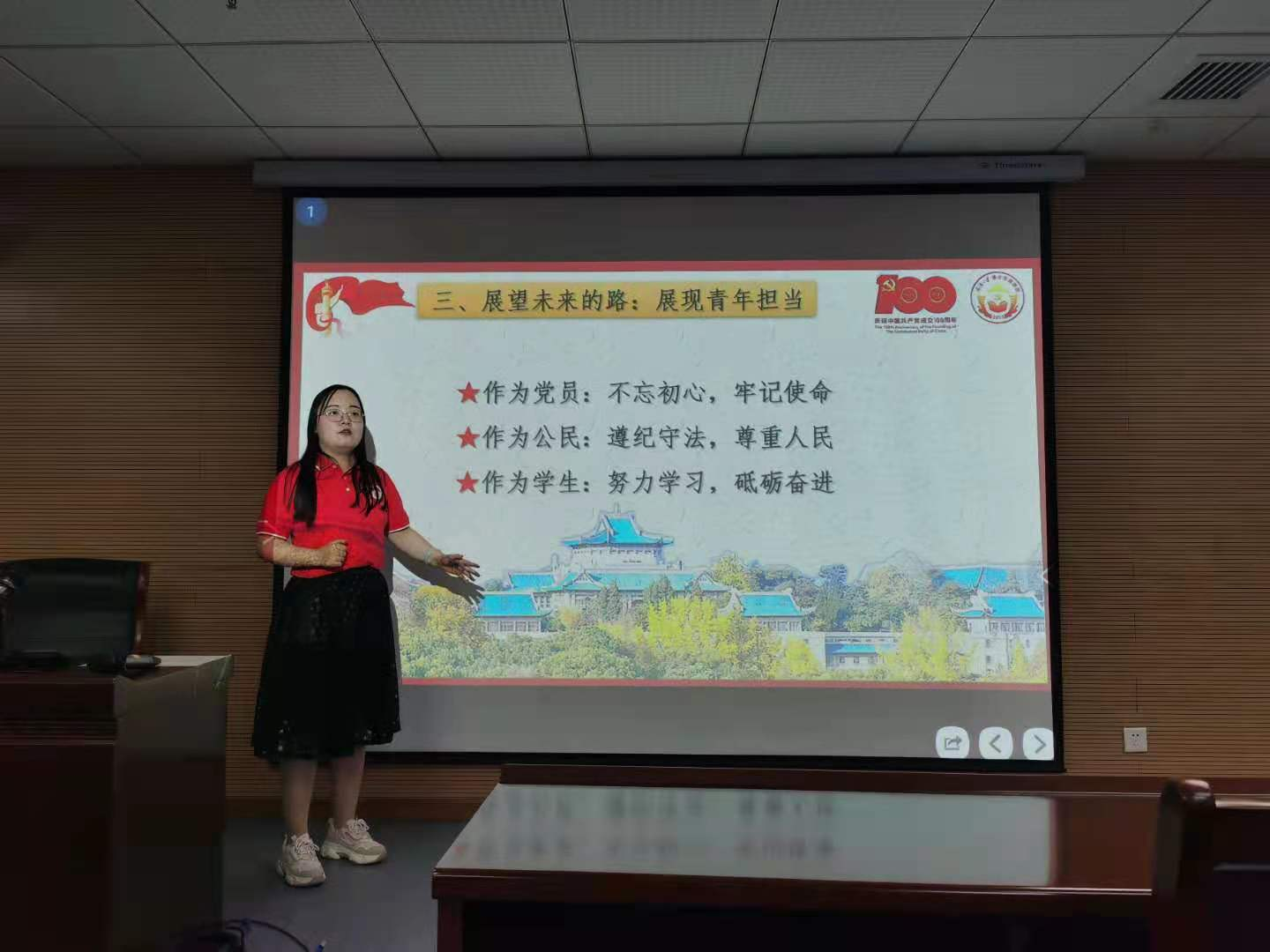 党课的课堂上,各位支部成员认真听讲,积极互动,深刻领悟到到学习党史的重要性。作为青年党员,我们不仅要读全、读通、读懂党史,更要学会以史为鉴,不忘初心,牢记使命,砥砺奋进,不断提升党性修养,发挥党员的先锋模范作用,建设先进的基层学生党组织。